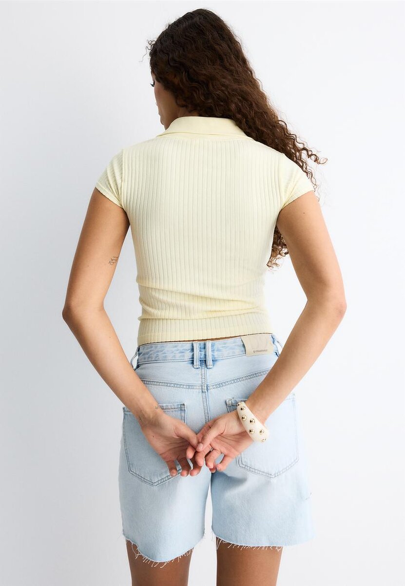 Přiléhavé Seamless tričko s límečkem typu Johnny a výstřihem do V. Krátký rukáv. K dispozici v několika barvách.