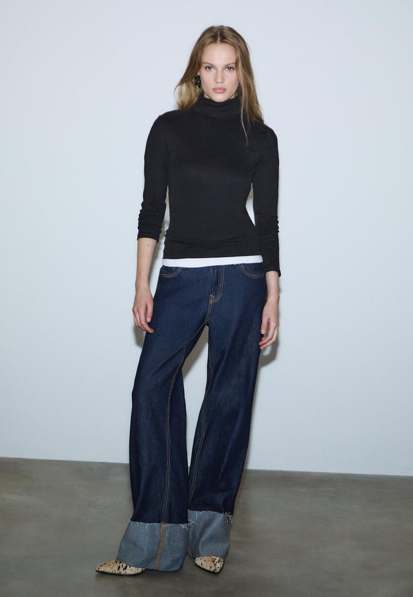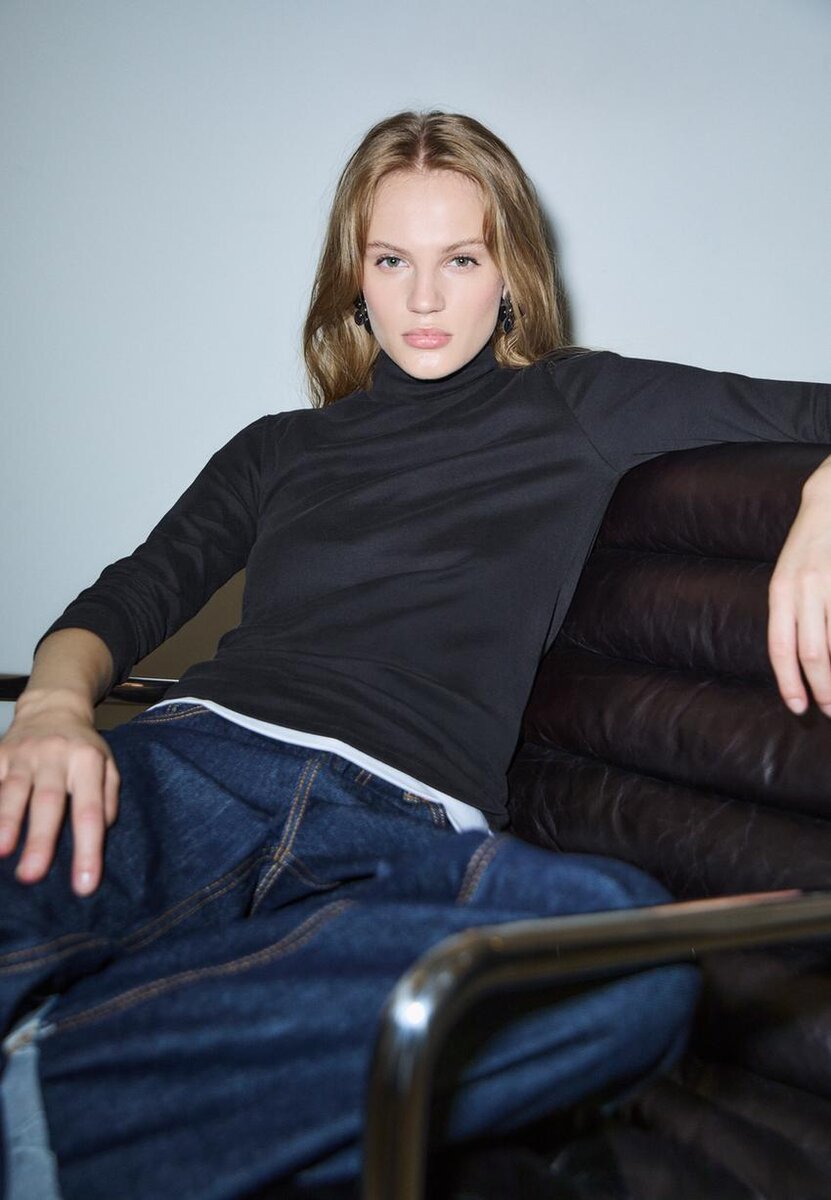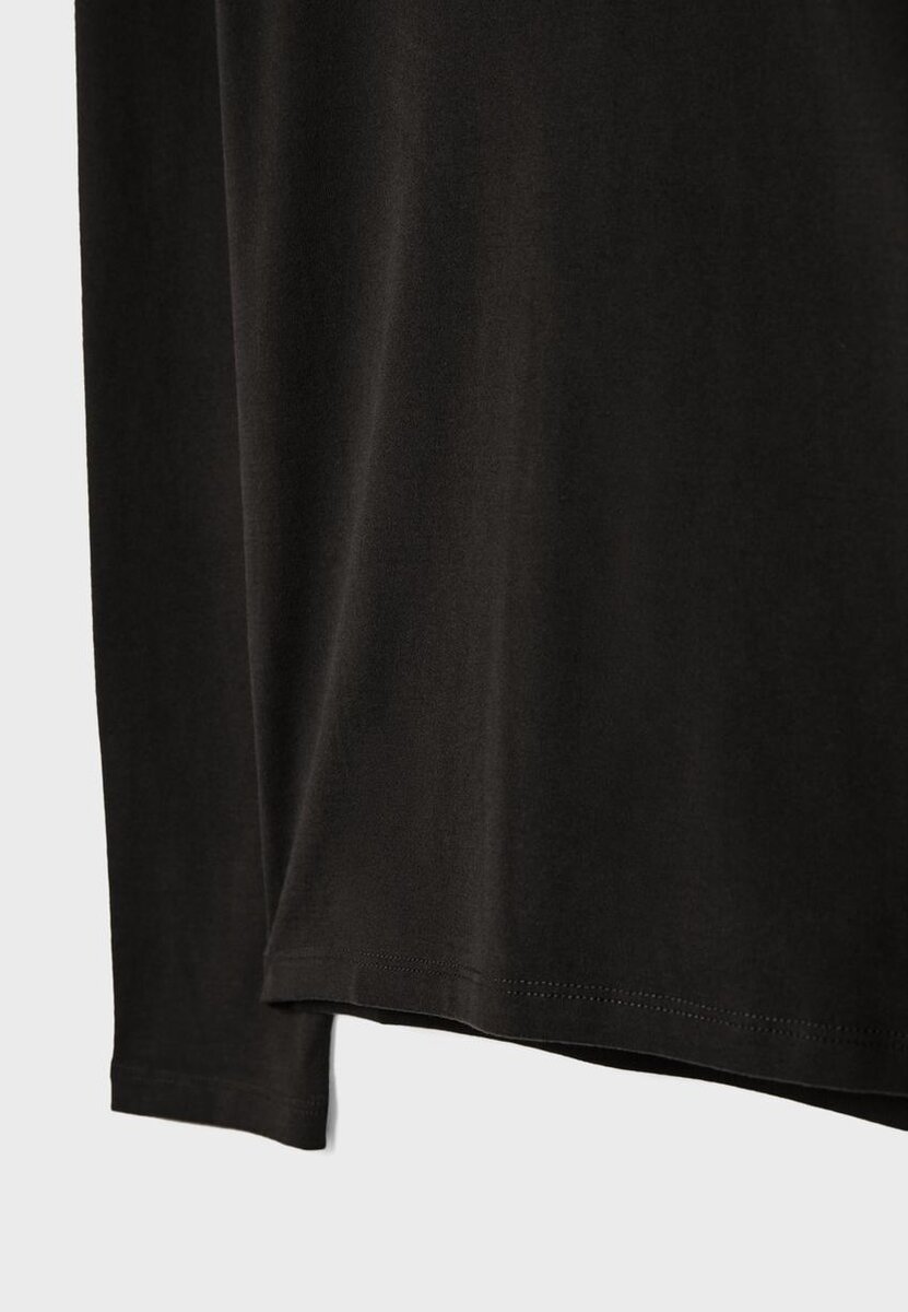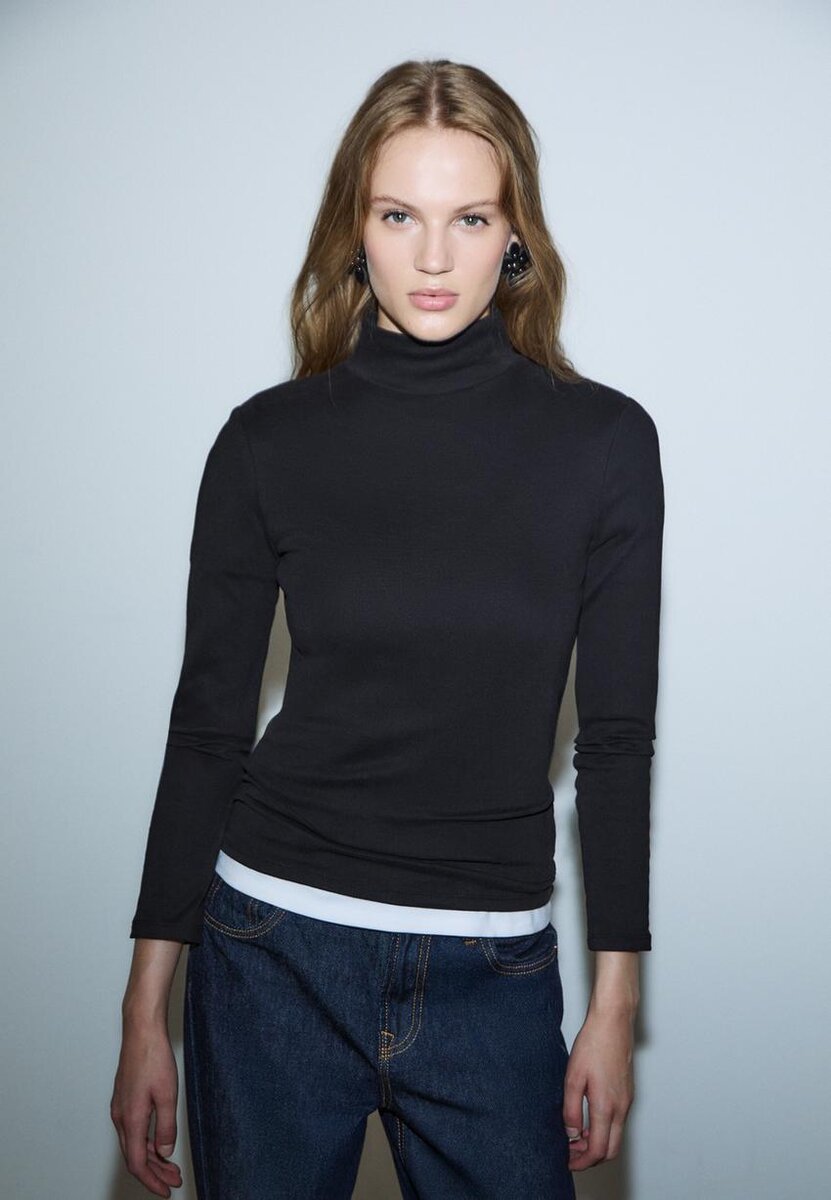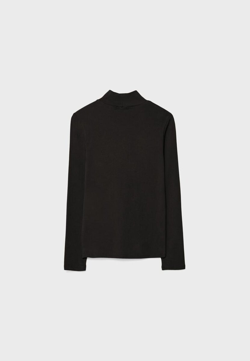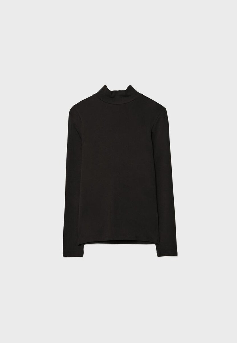 Basic tričko vyrobené z materiálu jemného na dotek. Má vysoký výstřih a dlouhé rukávy. K dispozici v různých barvách.