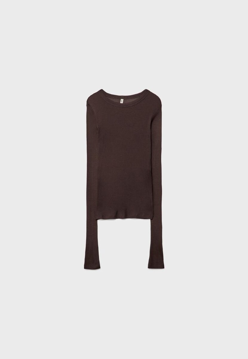 Přiléhavé tričko s dlouhým rukávem a kulatým výstřihem. K dispozici v několika barvách.